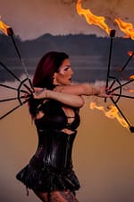 Eine weitere erstklassige Feuerstripperin ist unsere Pink, die eleganten Striptease mit Feuerfächer Shows und Feuer Poi Shows verbindet!